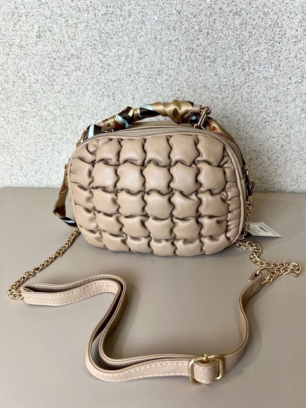 Bolsa: tamanho médio, com alça de mão com detalhe em lenço, e alça opicional com uma parte em correntaria dourada e outra em couro ecologico, com fechamento com dois zipers, e forro interno. Ideal para carregar , maquiagem, documentos, celular, dinheiro, cartões e chaves.