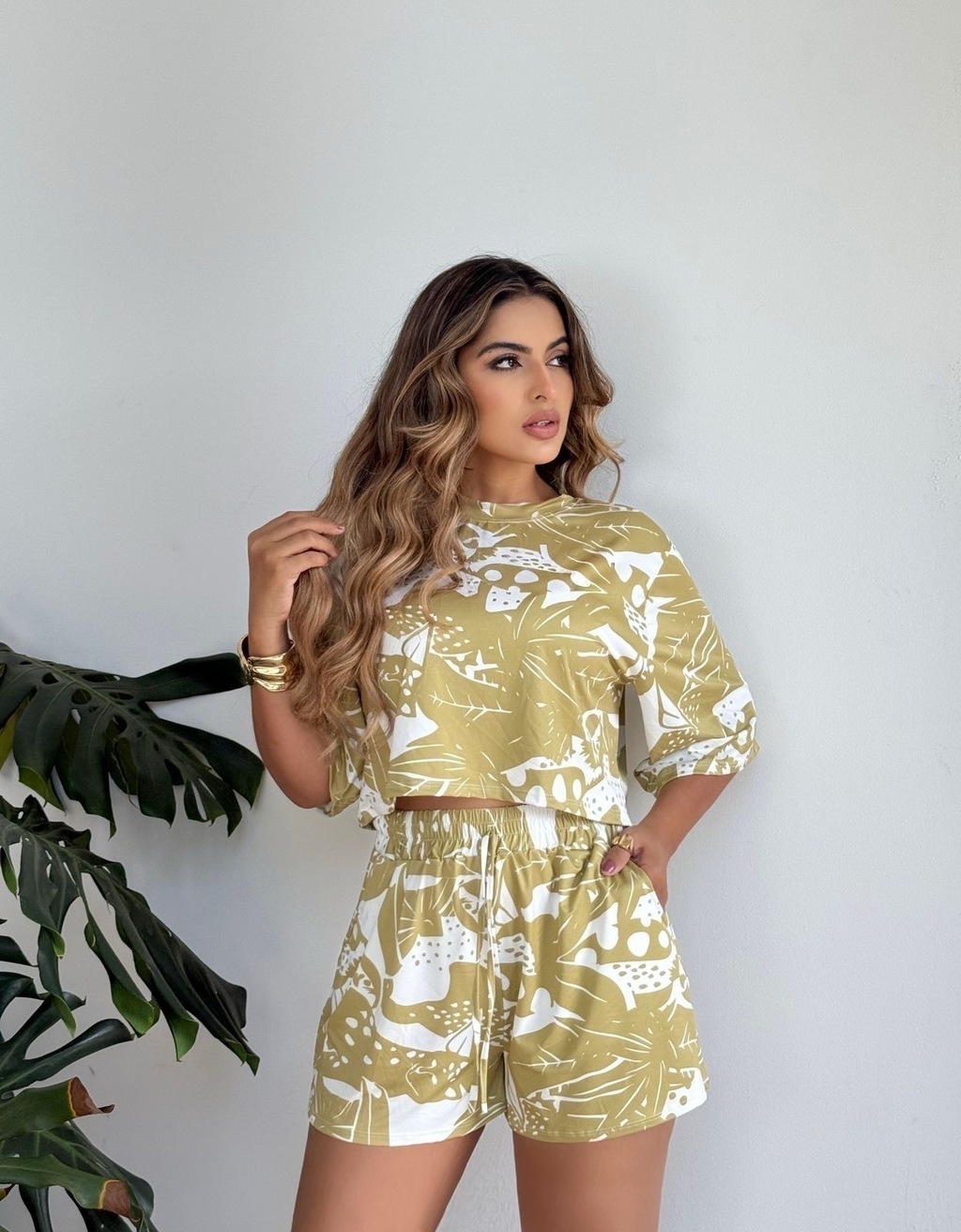 O short segue o mesmo padrão de estampa e tecido, com cós elástico que garante maior conforto e ajuste ao corpo. Sua modelagem soltinha proporciona liberdade de movimento, sendo uma peça ideal para compor visuais descontraídos com um toque de sofisticação. O conjunto Celina é perfeito para quem busca praticidade com estilo em uma única proposta.